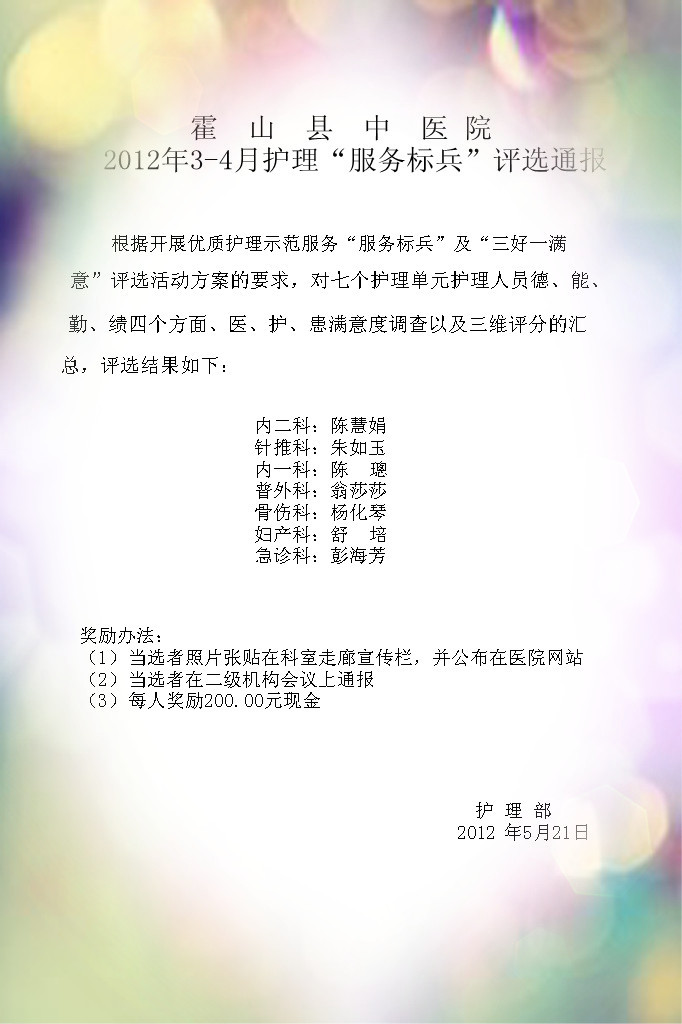 2012年5-6月护理“服务标兵”评选通...